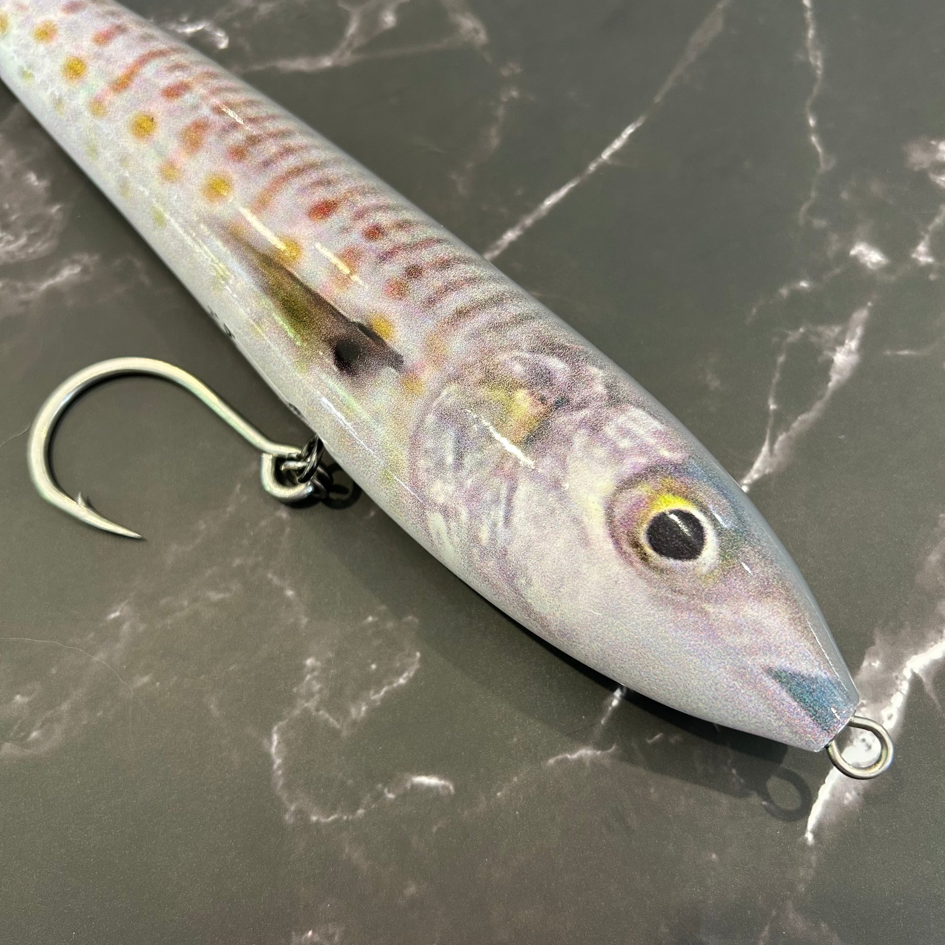 The 225mm / 140g HAKU is a true surface-oriented stick bait, designed for controlled, rhythmic retrieves rather than aggressive popper-style sweeps.